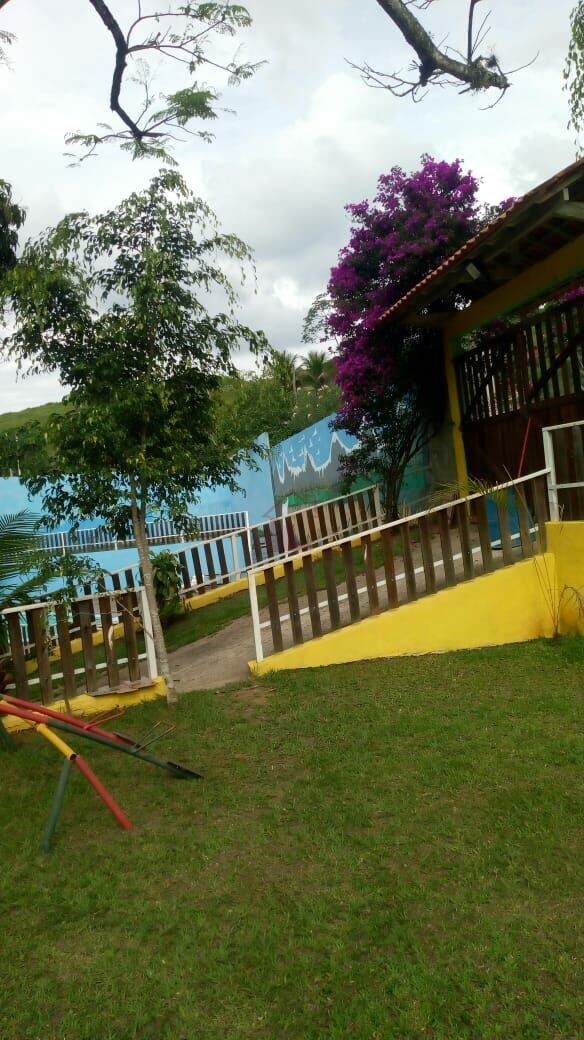 Essa maravilhosa chácara é composta de 2 quartos amplos, podendo comportar até 48 camas beliches (26 no quarto feminino e 22 no masculino, já incluso no local), 2 banheiros amplos no modelo de vestiário, sendo um feminino e o outro masculino, com 3 chuveiros e 4 vasos, um salão de festa, cozinha com freezer e geladeira, churrasqueira e fogão a lenha. E não para por aí, tem também um campo de futebol, playground infantil, 2 piscinas, espaço para carro, 2 áreas em construção ( oportunidade de fazer o que desejar). Pra quem gosta ou deseja cultivar, hortaliças ou flores, também tem local específico.